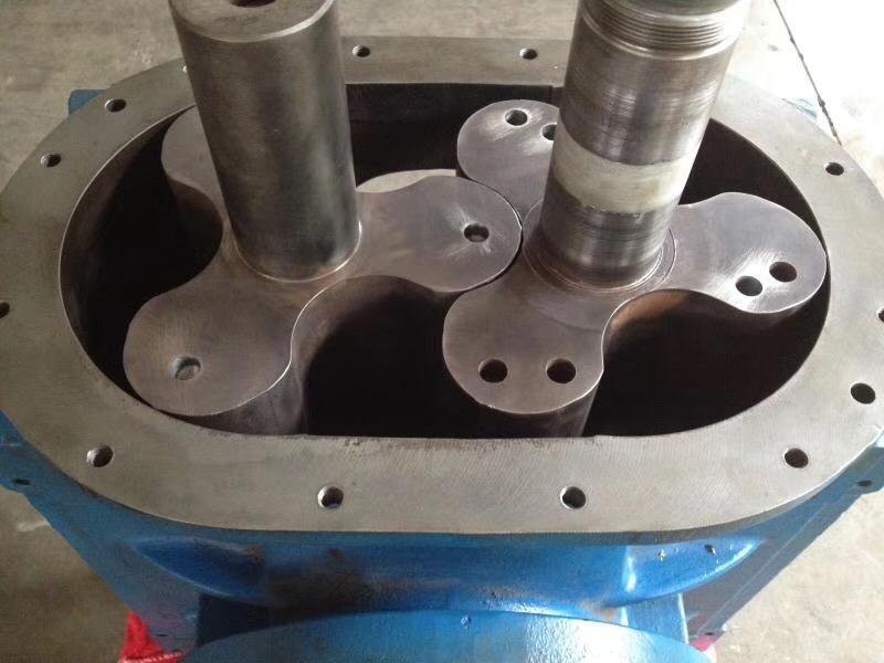 三葉轉(zhuǎn)子羅茨鼓風(fēng)機(jī)的振動(dòng)和噪聲比二葉的小, 在三葉轉(zhuǎn)子上使用的軸承的壽命比在二葉上使用的長(zhǎng) 15% 左右。而且三葉轉(zhuǎn)子可以采用扭葉轉(zhuǎn)子來降低其噪聲和振動(dòng), 二葉轉(zhuǎn)子由于結(jié)構(gòu)上的限制不能采用扭葉結(jié)構(gòu)。